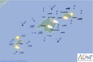 La Agencia Estatal de Meteorología (Aemet) pronostica para este lunes 13 de mayo, en Baleares: cielo poco nuboso o despejado, con intervalos nubosos por la mañana. Temperaturas con pocos cambios. Vientos del norte y nordeste, con intervalos de fuerte hasta la tarde en el nordeste de la isla.