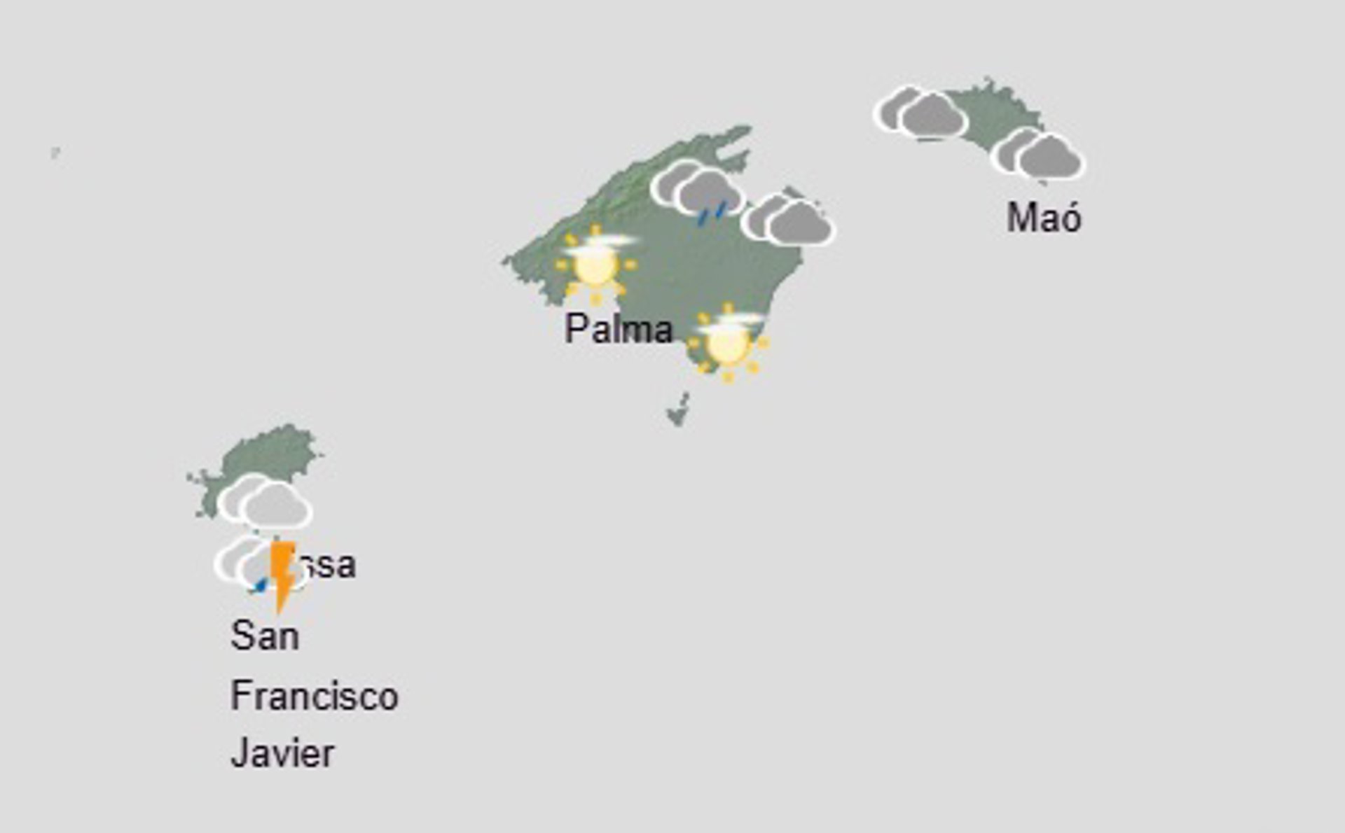 La Agencia Estatal de Meteorología (Aemet) prevé para este lunes cielo nuboso con chubascos ocasionales que puede ir acompañados de tormenta y, a partir de la tarde o noche preferentemente en Ibiza y Formentera, no se descarta que alguno sea localmente fuerte.