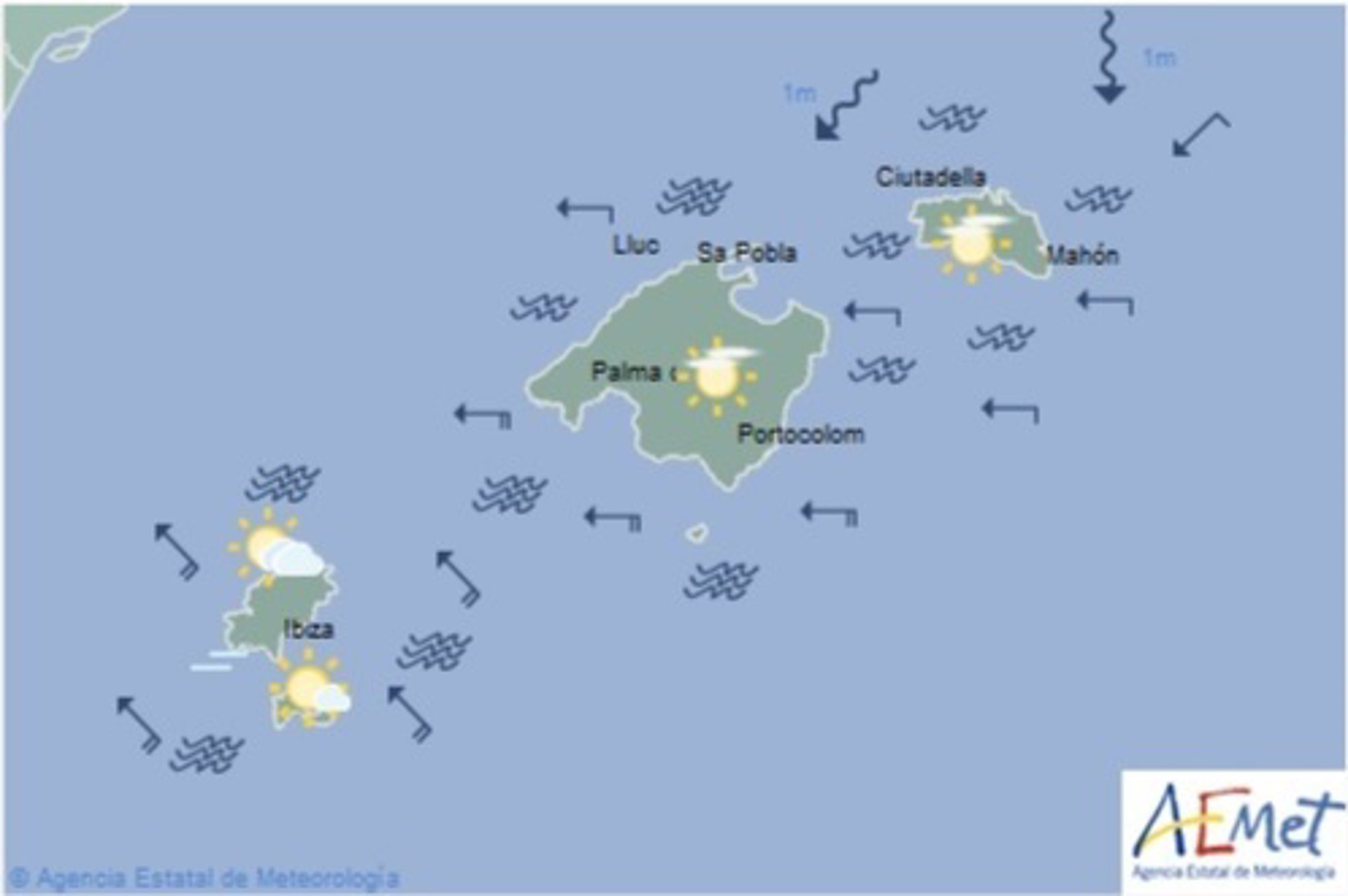 La Agencia Estatal de Meteorología (Aemet) pronostica para este lunes 15 de abril, en Baleares: intervalos de nubes medias y altas. Temperaturas nocturnas con pocos cambios y diurnas en descenso. Vientos del este y sureste.