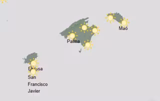 Temperaturas en ascenso. Viento de componente norte moderado a fuerte con rachas de 70 a 80 km/h en Menorca y nordeste de Mallorca hasta la mañana, disminuyendo en Mallorca y las Pitiusas a viento entre flojo y moderado de componente oeste.