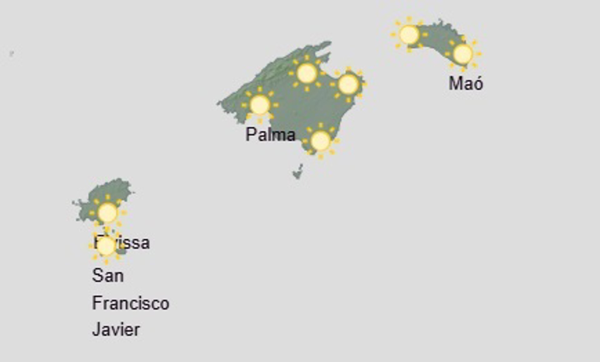 Temperaturas con pocos cambios o en ligero ascenso las máximas en el sur de Mallorca e interior de Menorca e Ibiza. Viento flojo de componente este con brisas costeras por la tarde.