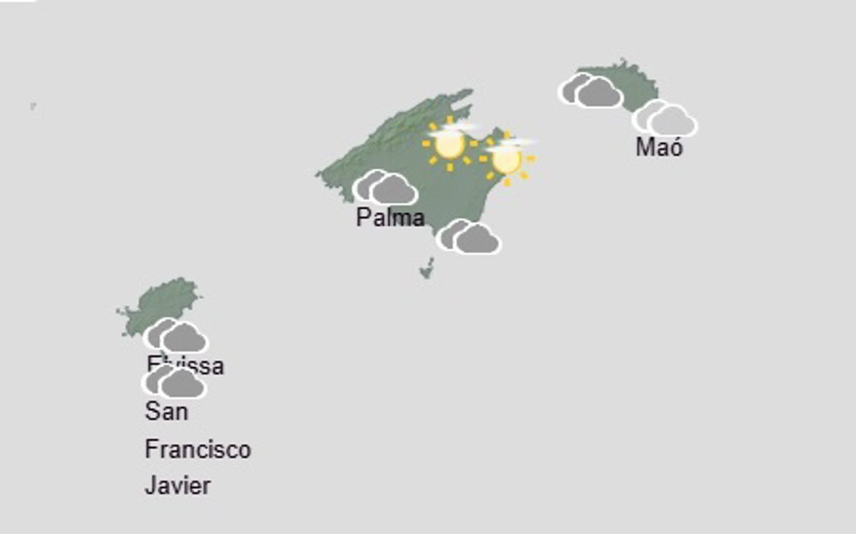 La Agencia Estatal de Meteorología (Aemet) prevé para este martes cielo nuboso a cubierto con algunos chubascos en el oeste del archipiélago desde la mañana, que en las Pitiusas podrían ser localmente fuertes.