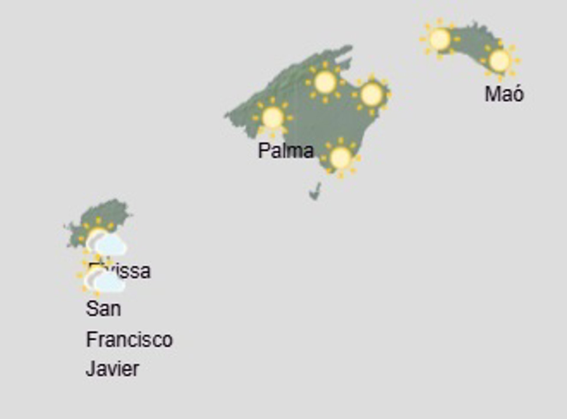 Temperaturas nocturnas en ascenso en las Pitiusas y con pocos cambios o en descenso en el resto. Heladas débiles locales en la Serra de Tramuntana. Temperaturas diurnas con pocos cambios o en ascenso. Viento en general flojo del suroeste.