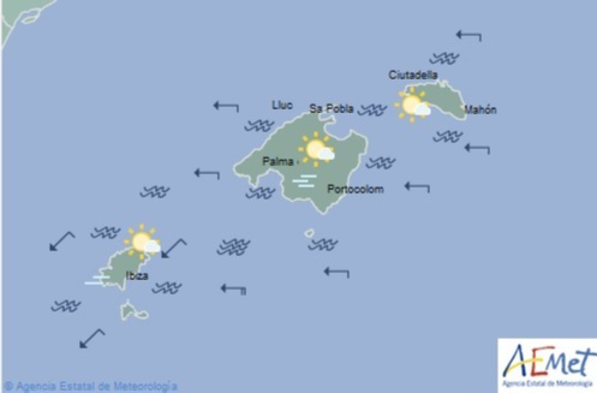 La Agencia Estatal de Meteorología (Aemet) pronostica para este martes 19 de febrero, en Baleares: predominio de cielo poco nuboso. Brumas matinales, y algún banco de niebla. Temperaturas con pocos cambios o en ligero descenso. Heladas débiles en la sierra de Tramuntana. Vientos de componente este, en general flojos.