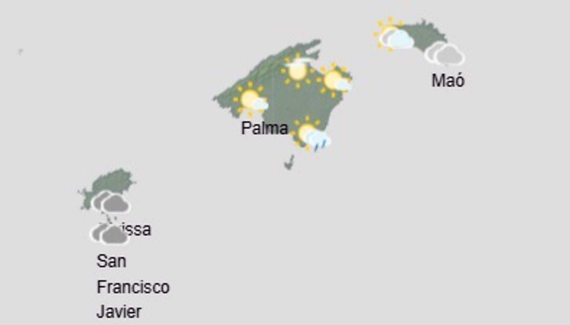 Temperaturas con pocos cambios o en ligero descenso las mínimas y ligero ascenso las máximas. Viento flojo de componente norte en Pitiusas, variable en Mallorca y de oeste y noroeste en Menorca.