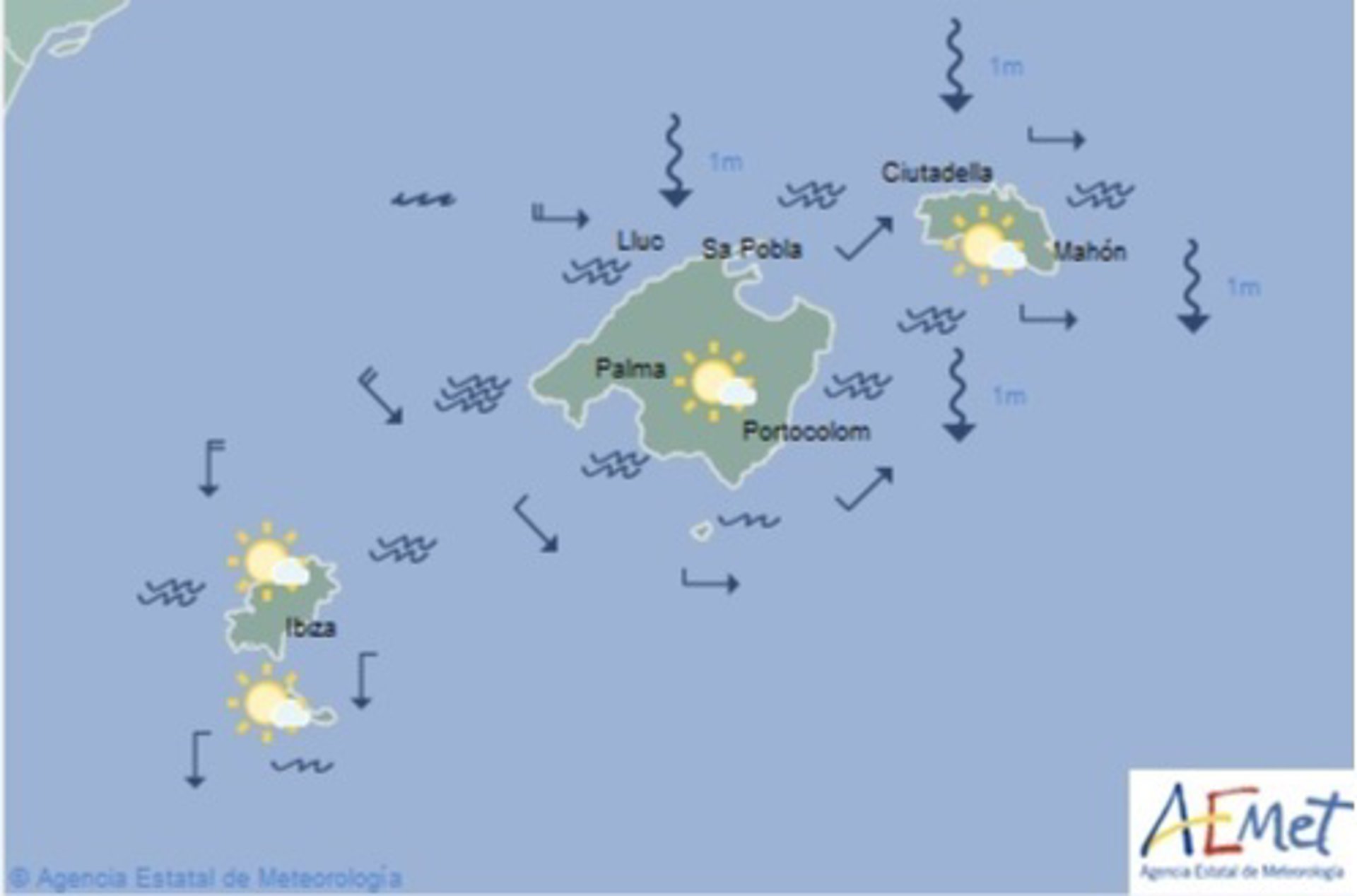 La Agencia Estatal de Meteorología (Aemet) pronostica para este martes 28 de mayo, en Baleares: predominio de poco nuboso. Temperaturas con pocos cambios. Vientos de componente oeste en general flojos, con brisas costeras por la tarde.