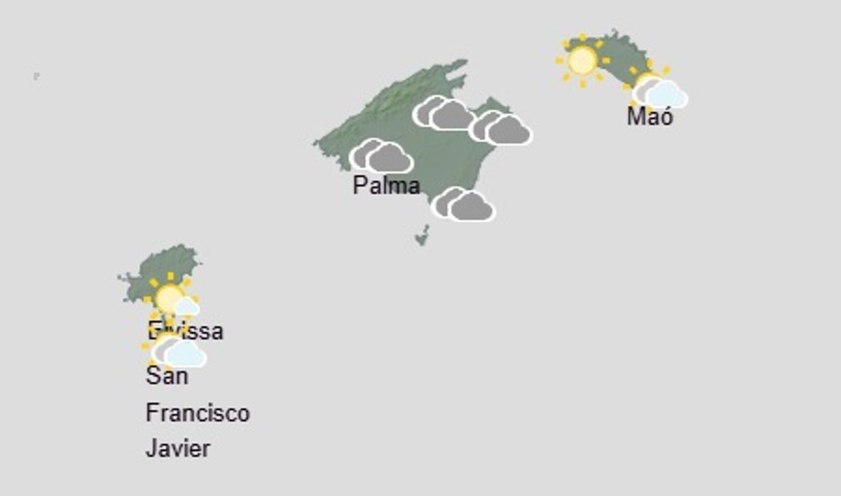 La Agencia Estatal de Meteorología (Aemet) prevé para este martes intervalos nubosos con chubascos dispersos y ocasionales, preferentemente, por la mañana, en el oeste de Mallorca y, por la noche, en Menorca y Pitiusas.