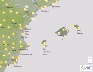 La Agencia Estatal de Meteorología (Aemet) pronostica para hoy martes, 9 de agosto, en Baleares: cielo poco nuboso o despejado, con nubes de evolución diurna en Mallorca. Temperaturas con pocos cambios. Viento de componente este flojo con brisas costeras.