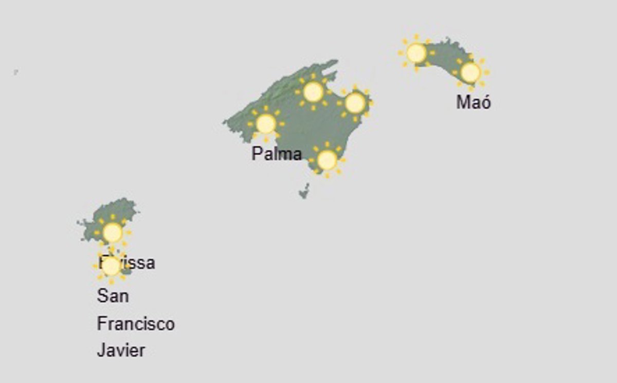 Viento flojo variable con brisas costeras, predominando el oeste en Menorca y el sureste en Pitiusas.
