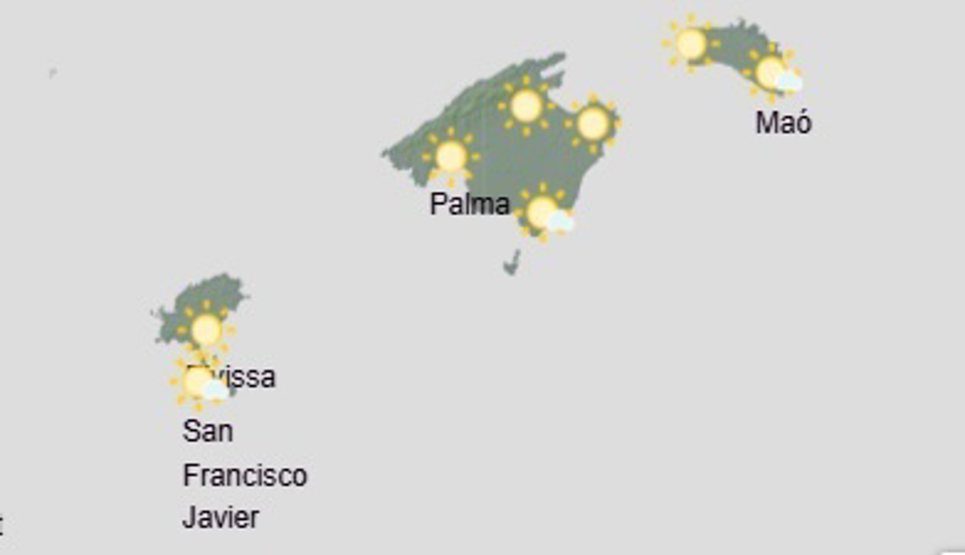 Temperaturas nocturnas con pocos cambios en las Pitiusas y en el resto en descenso localmente notable en Menorca, sin descartar alguna helada débil local en Mallorca. Temperaturas diurnas en ligero ascenso. Viento en general flojo del norte y nordeste.
