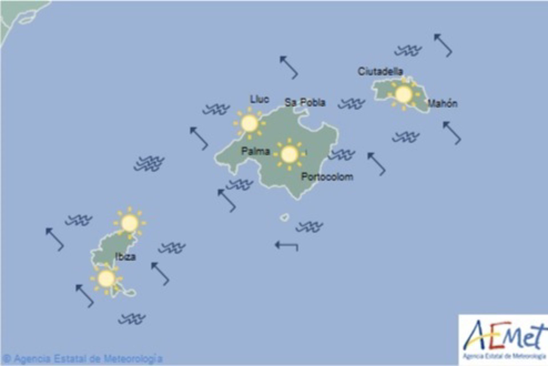 PALMA DE MALLORCA 4 Jun. (EUROPA PRESS) - La Agencia Estatal de Meteorología (Aemet) pronostica para este martes 4 de junio, en Baleares: cielo poco nuboso. Temperaturas en ligero ascenso. Vientos del sureste y sur.