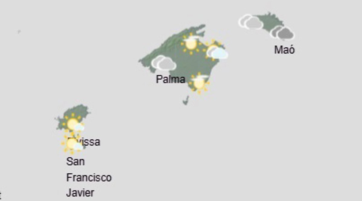 La Agencia Estatal de Meteorología (Aemet) prevé para este miércoles en Baleares intervalos nubosos con brumas y bancos de niebla, tendiendo por la mañana a cielo nuboso o cubierto con precipitaciones dispersas y, a partir de la tarde o noche, con chubascos que ocasionalmente pueden ser fuertes, con tormenta y granizo.