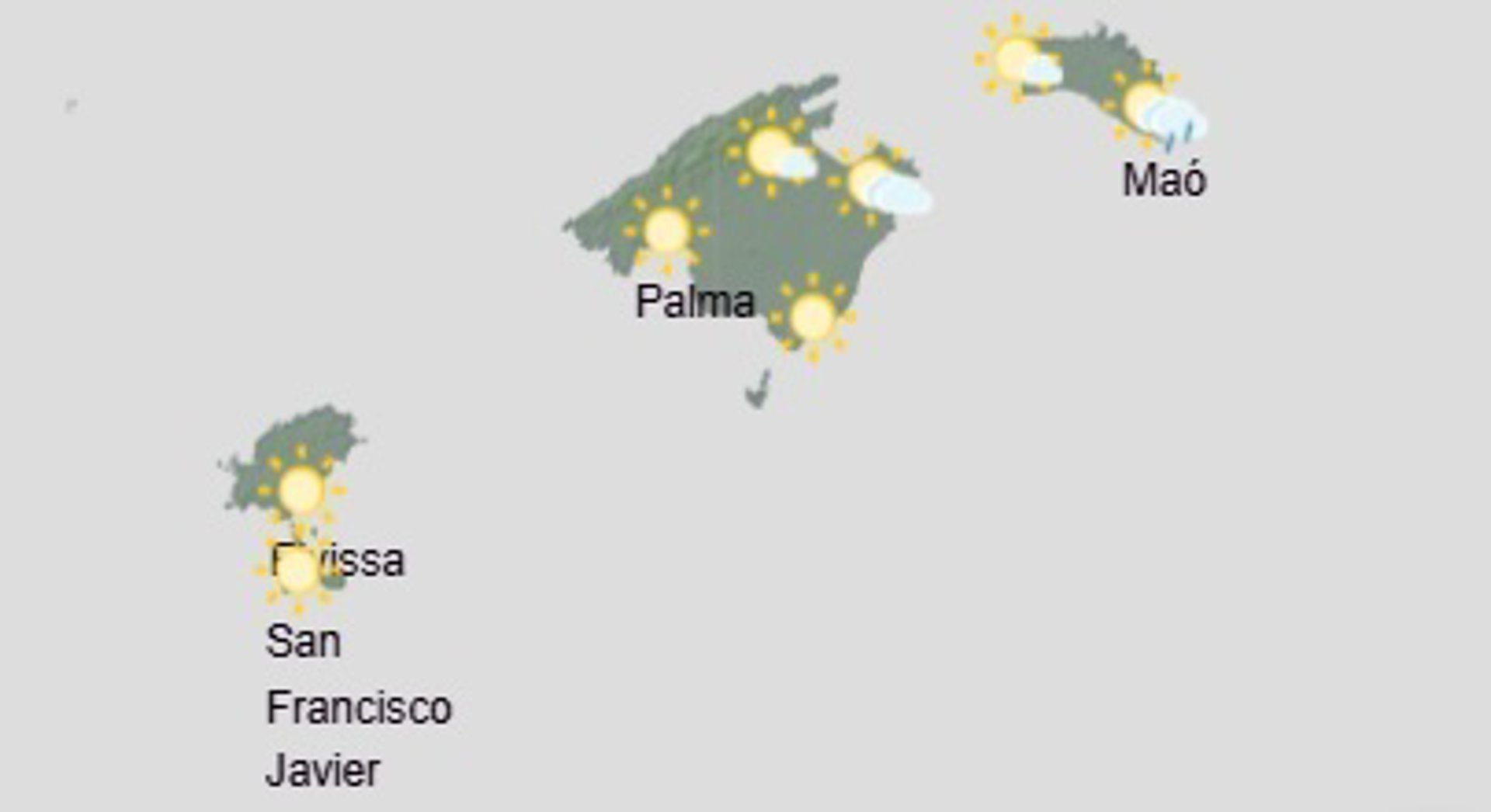 Temperaturas con pocos cambios, o en ascenso las nocturnas. Viento moderado de componente oeste con algún intervalo de fuerte en las Pitiusas y en cumbres de la sierra de Tramuntana.
