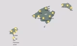 La Agencia Estatal de Meteorología pronostica para este miércoles en Baleares cielo poco nuboso con algún intervalo de nubes altas y brumas y algún banco de niebla matinal.