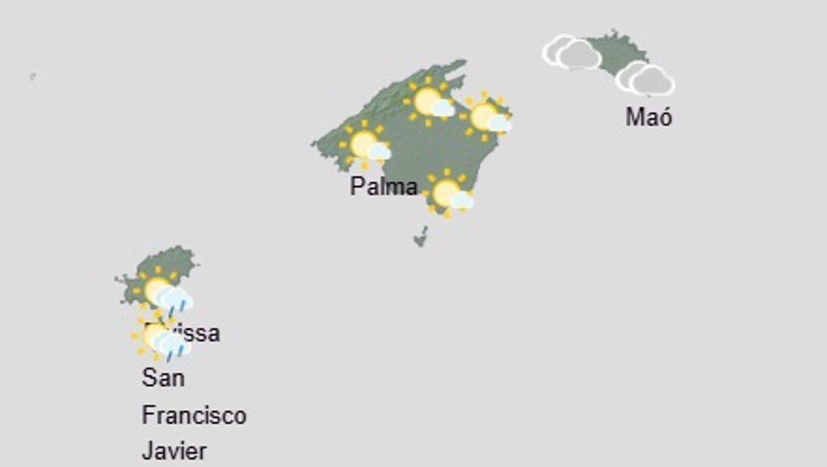 La Agencia Estatal de Meteorología (Aemet) prevé para este miércoles intervalos nubosos con probabilidad de algún chubasco ocasional que podría ser localmente fuerte o muy fuerte e ir acompañado de tormenta, preferentemente en la mitad sur de Mallorca y en Pitiusas durante las horas centrales del día.
