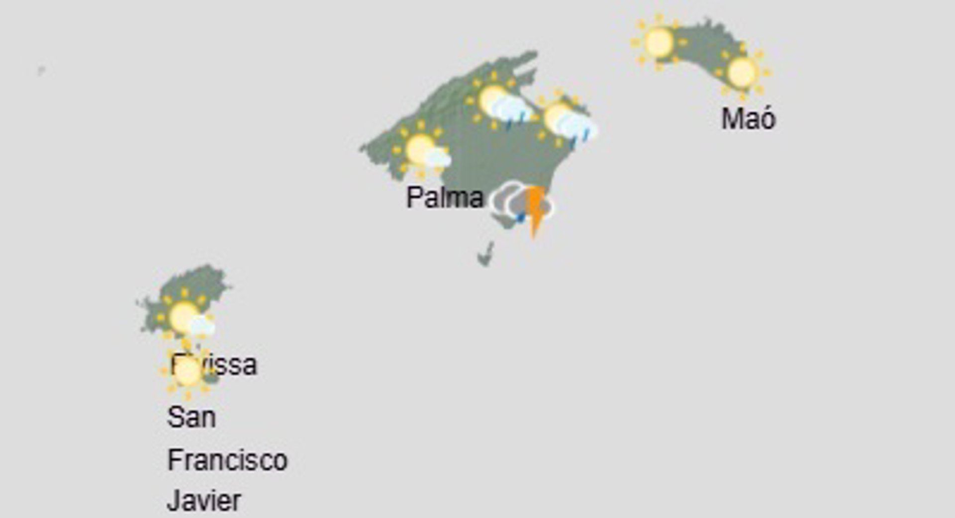 La Agencia Estatal de Meteorología (Aemet) prevé para este miércoles en Mallorca y Menorca, intervalos nubosos con chubascos ocasionales y aislados hasta la tarde, que pueden ir acompañados de tormenta y con baja probabilidad, en el sureste de Mallorca, ser localmente fuertes; en Ibiza y Formentera, cielo poco nuboso.