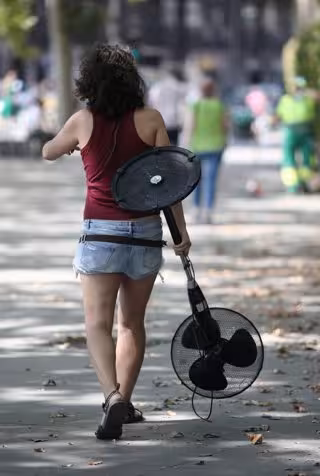 Una mujer pasea por una calle con un ventilador en la mano - Eduardo Parra - Europa Press