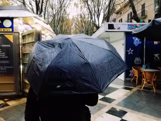 Archivo - Un hombre pasea por la Rambla de Palma bajo un paraguas un día de lluvia. - EUROPA PRESS - Archivo