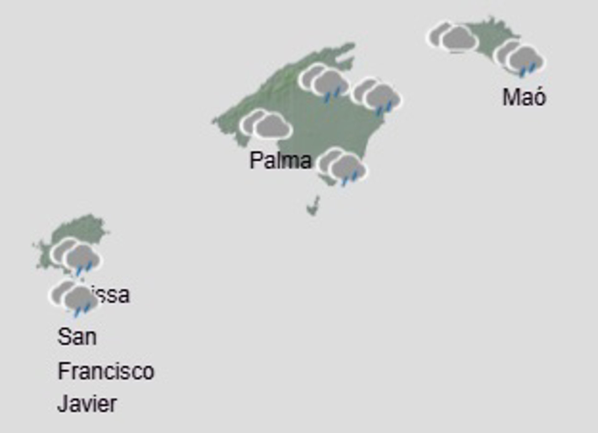 La Agencia Estatal de Meteorología (Aemet) prevé para este miércoles en Baleares cielo cubierto con lluvias y chubascos generalizados que pueden ser localmente fuertes tendiendo durante la tarde a intervalos nubosos con algún chubasco ocasional y aislado.