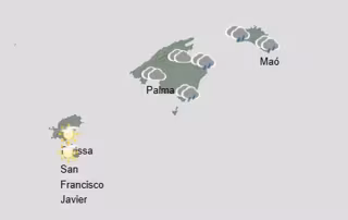 La Agencia Estatal de Meteorología (Aemet) prevé para este sábado cielo nuboso o cubierto con chubascos, preferentemente en Menorca y Mallorca, tendiendo por la noche a poco nuboso.