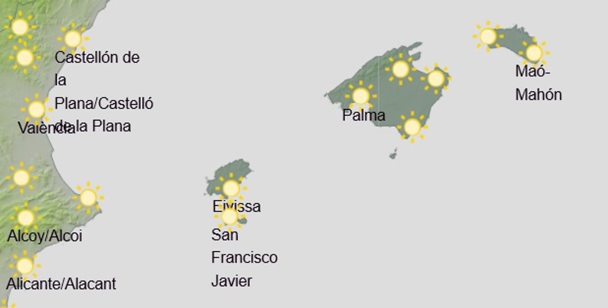 La Agencia Estatal de Meteorología (Aemet) prevé para este sábado, 21 de febrero en Baleares cielo poco nuboso y viento flojo de componente oeste.
