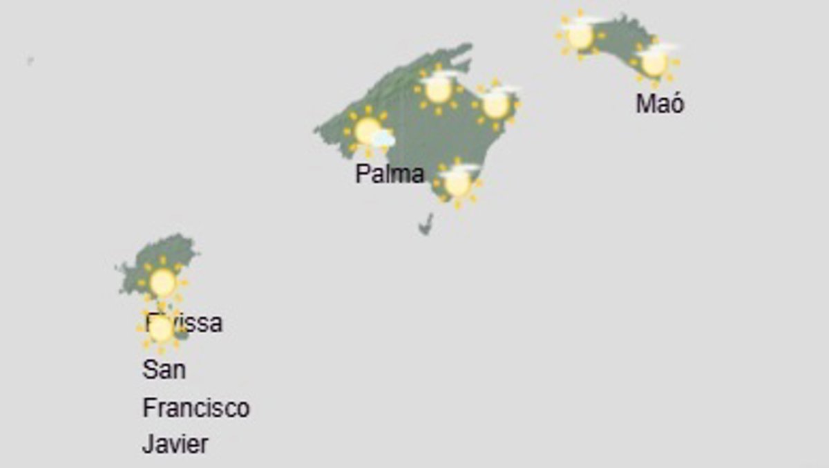 La Agencia Estatal de Meteorología (Aemet) prevé para este viernes en Baleares intervalos nubosos tendiendo durante la mañana a predominar el cielo poco nuboso. Brumas matinales.