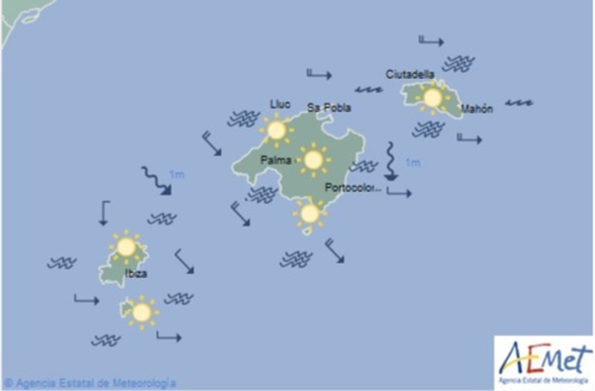 La Agencia Estatal de Meteorología (Aemet) pronostica para este viernes 15 de marzo, en Baleares: cielo despejado. Temperaturas en ascenso. Vientos del oeste y noroeste disminuyendo a flojos por la tarde con brisas costeras.