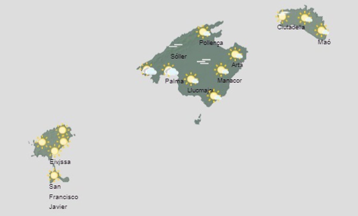 La Agencia Estatal de Meteorología (Aemet) prevé para este viernes en Baleares cielo poco nuboso o despejado con intervalos de nubes bajas hasta la mañana y brumas con algunos bancos de niebla matinales.