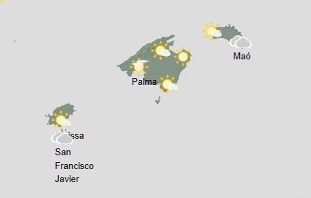 Brumas y algún banco de niebla matinal. Temperaturas nocturnas en descenso y diurnas con pocos cambios o en ascenso en el norte de Mallorca. Viento entre flojo y moderado del suroeste.