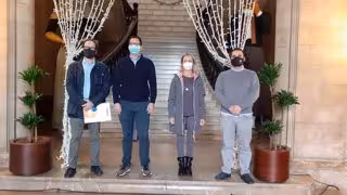 El concejal de Promoción Económica y Empleo; Rodrigo Romero, el director general de Comercio, Fabrizio di Giacomo; el gerente de Afedeco, Toni Vilella, y Carolina Domingo, en representación de Pimeco. - AYUNTAMIENTO DE PALMA
