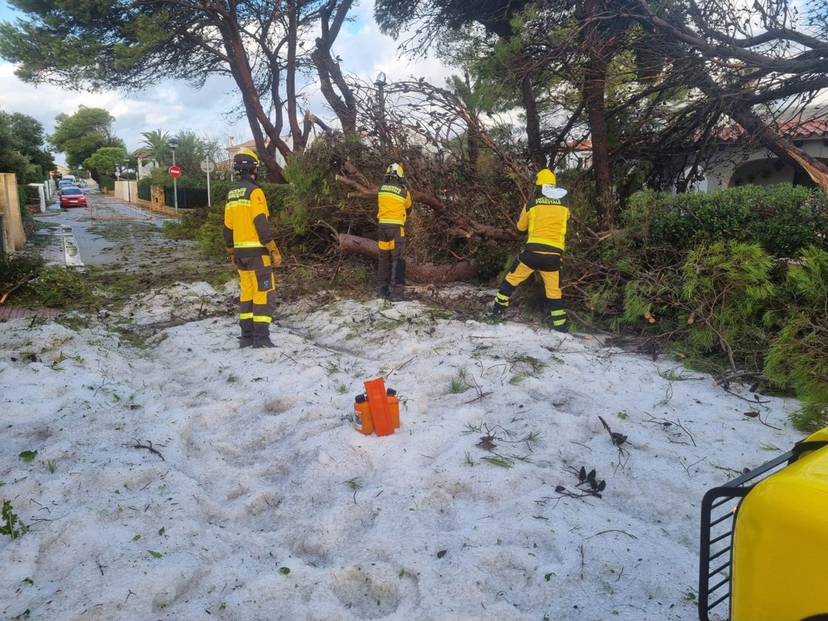 La fuerte tormenta que ha afectado a Menorca la madrugada de este domingo ha provocado inundaciones en hoteles, domicilios y vías públicas, además de árboles y farolas caídas y pequeños desprendimientos, especialmente en la zona de Ciutadella, donde ha caído también granizo.