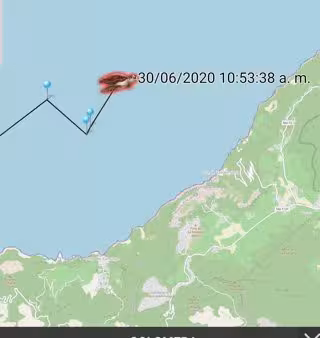 Posición de la tortuga 'Colomera' en el mapa la mañana de este martes, en aguas del área del Port de Valldemossa, en Mallorca. - OCEANOGRFIC VALENCIA