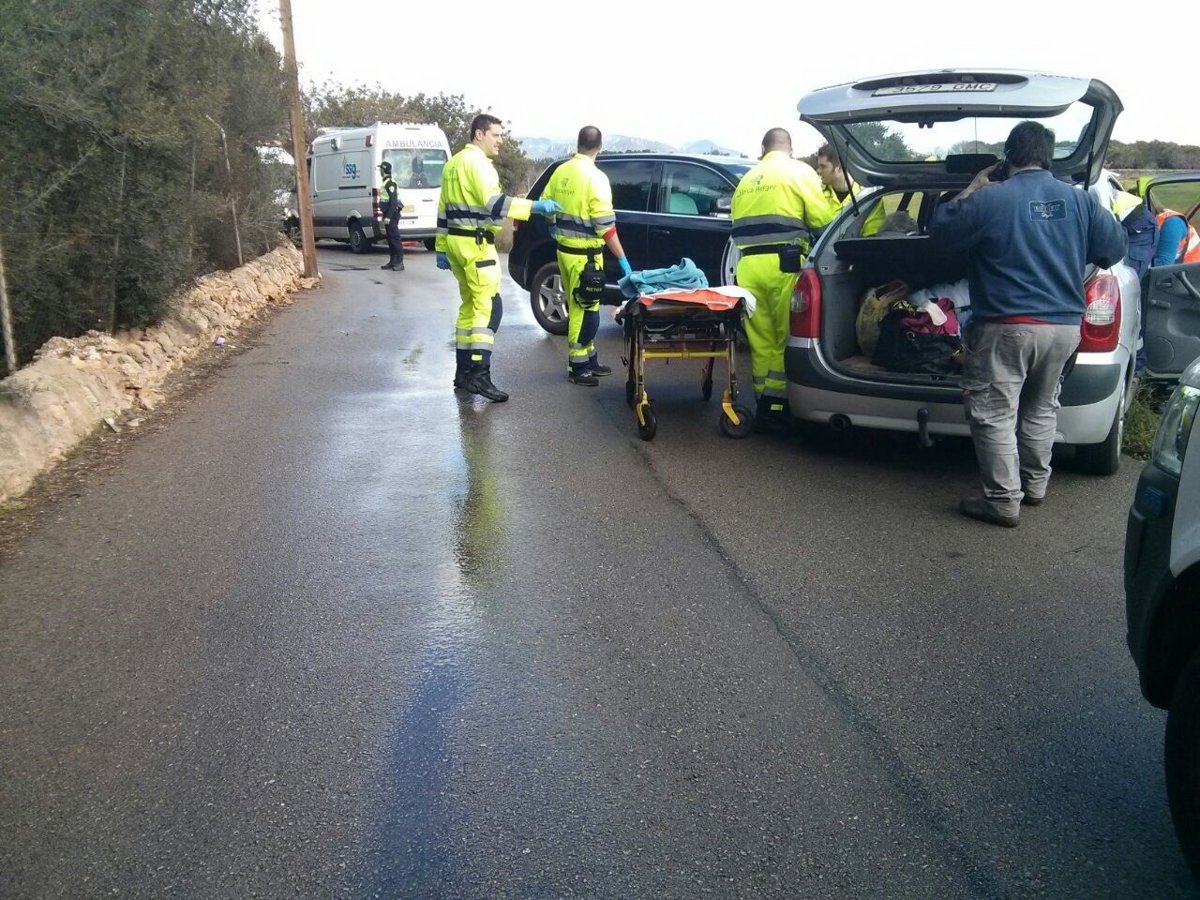 Dos vehículos han chocado frontalmente este martes en el Camí de Muntanya dirección Ses Trempes, en Marratxí, en torno a las 12.15 horas. El aparatoso accidente se ha saldado con cuatro heridos, uno de ellos, una persona de avanzada edad, ha sido trasladado al hospital con pronóstico reservado.