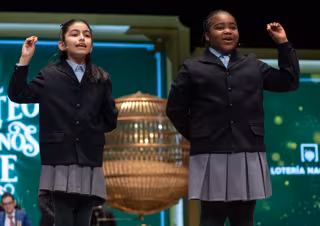 Rosario Martínez Garía (i), y Ainhoa Rosero Gómez (d) cantando un premio. - Eduardo Parra - Europa Press