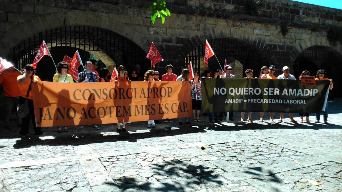 El consorcio presta servicios a discapacitados psíquicos y personas con problemas de conducta y los trabajadores, apoyados por UGT y CGT, llevan tiempo organizando concentraciones contra el Govern para protestar pidiendo que el consorcio sea 100% público.
