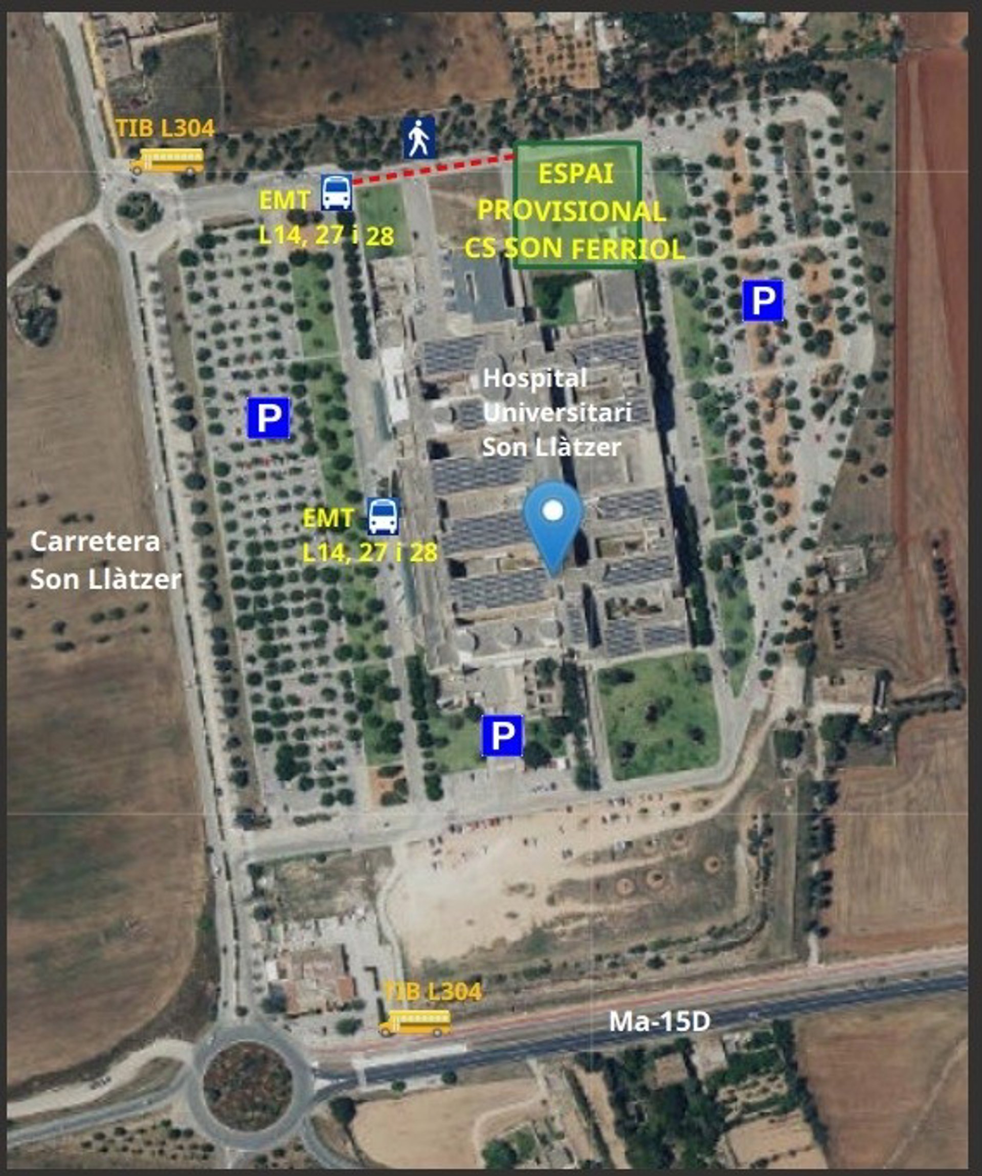 Mapa con la ubicación provisional del CS de Son Ferriol al recinto hospitalario de Son Lltzer. - CAIB