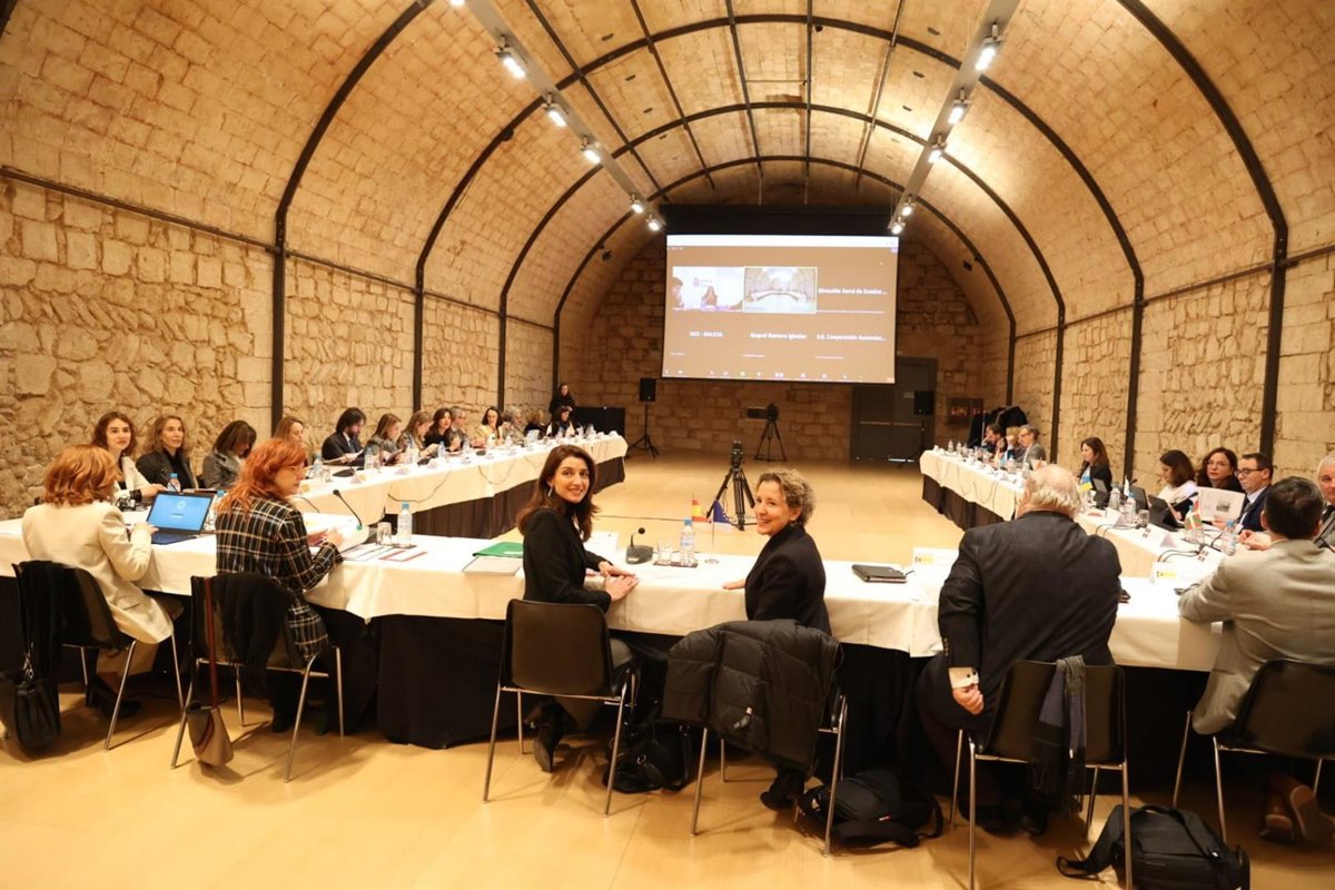 La ministra de Justicia, Pilar Llop, junto a la delegada del Gobierno en Baleares, Aina Calvo, en la Sectorial de Justicia en Es Baluard, en Palma. - ISAAC BUJ - EUROPA PRESS