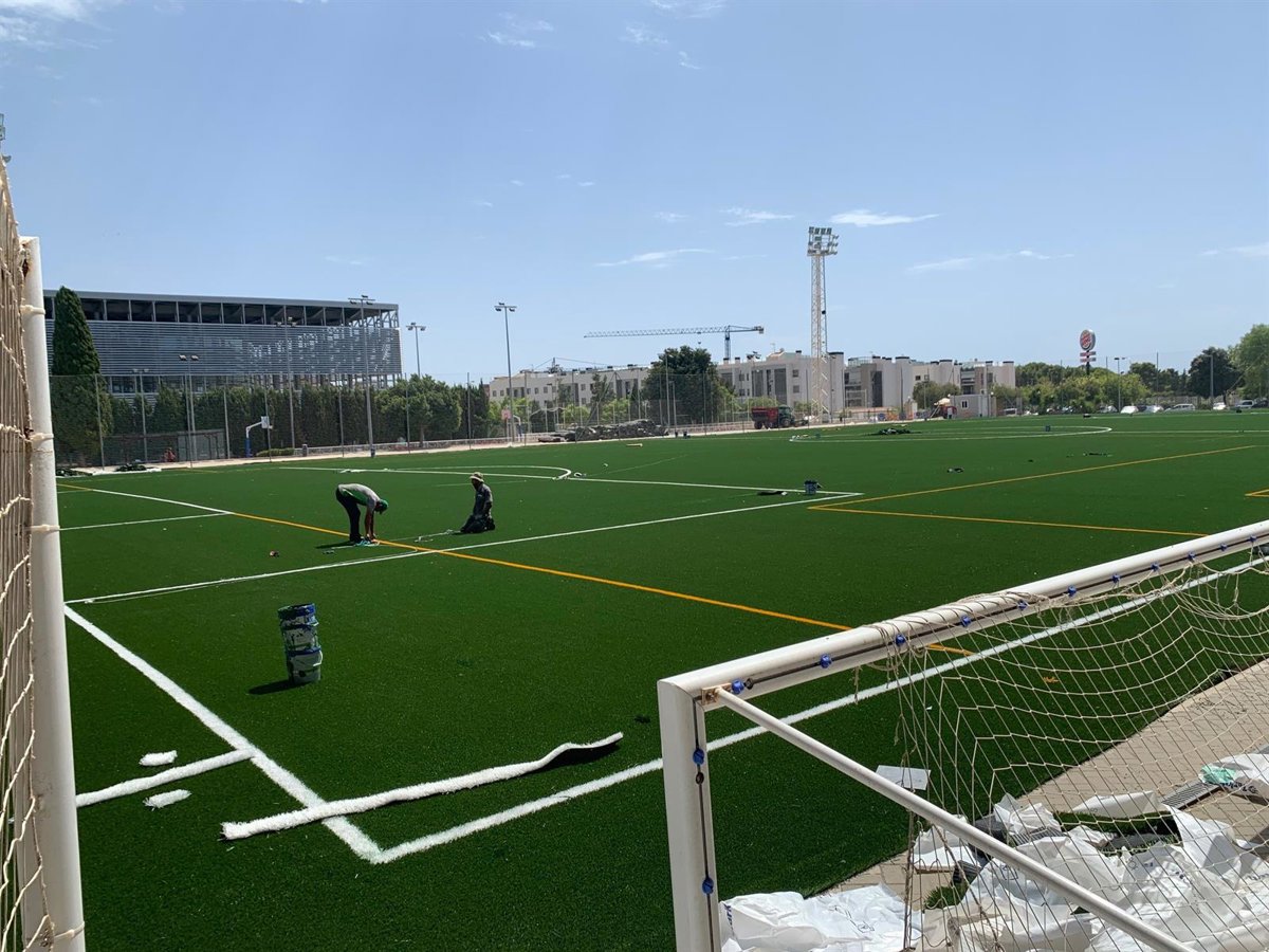 Archivo - Trabajos de cambio de césped en el campo de fútbol del polideportivo Sant Ferran. - CONSELL DE MALLORCA - Archivo