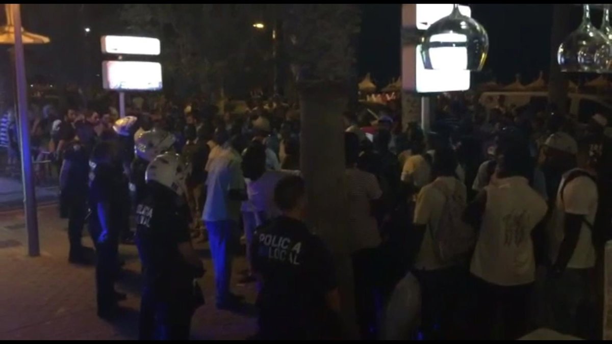 Tres hombres han sido detenidos tras un multitudinario altercado protagonizado por vendedores ambulantes la pasada noche en s'Arenal, en el que ha resultado herido leve al menos un policía nacional.
