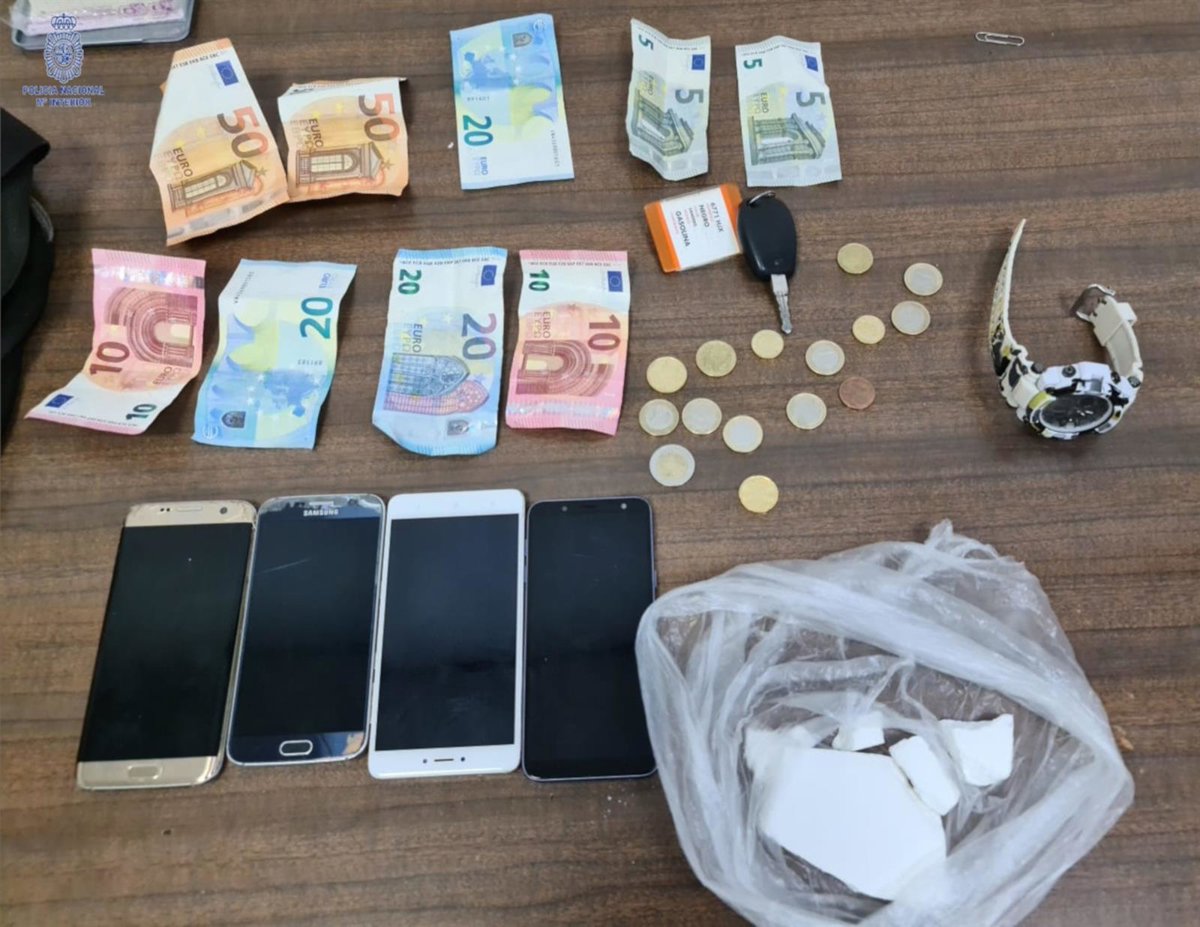 De acuerdo con los agentes, el varón manifestó que tenía un gramo de cocaína para su consumo, pero negó que hubiera tirado una bolsa por la ventanilla. Sin embargo, los agentes comprobaron que en la bolsa que había lanzado al suelo había un bloque rocoso de color blanco metido en una bolsa de plástico, al parecer cocaína, y dinero en metálico.
