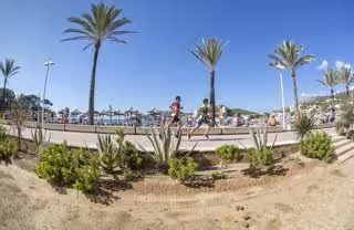 Por último, realizada la segunda transición, los atletas deberán completar la carrera a pie, de 21 km, que se realiza en cuatro vueltas y en un circuito que alterna el boulevard de Peguera con el paseo de la playa.