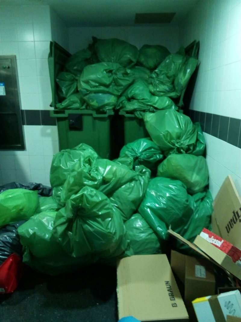 El comité de empresa de Son Espases ha explicado que la normativa de retirada de residuos exige que las bolsas estén depositadas en sus contenedores correspondientes y éstos tienen que permanecer cerrados.