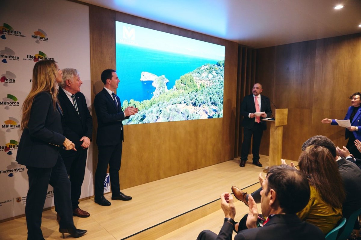 El presidente del Consell de Mallorca, Llorenç Galmés, y el gerente de ventas de United Airlines, Antonio de Toro, en la presentación de la ampliación de la conexión Palma-Nueva York en Fitur. - CONSELL DE MALLORCA