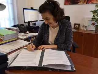 La consellera de Asuntos Sociales y Deportes, Fina Santiago, firma la resolución para permitir visitas a usuarios de residencias en las que no haya casos de COVID-19. - CAIB