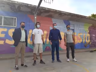 Según ha informado el Ayuntamiento este viernes en nota de prensa, el alcalde de Palma, Jose Hila, el regidor de Participación Ciudadana y Gobierno Interior, Alberto Jarabo, y el de Deportes, Francisco Ducrós, han visitado esta jornada la intervención que Alexandre Thoms, conocido como Sath, ha hecho en las pistas deportivas de la plaza Alexandre Fleming.
