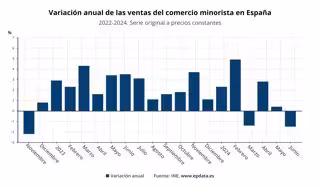 Con el descenso de junio, la facturación del comercio minorista rompe con dos meses consecutivos de tasas interanuales positivas, después de que en abril y mayo aumentara un 2,7% y un 0,4%, respectivamente.