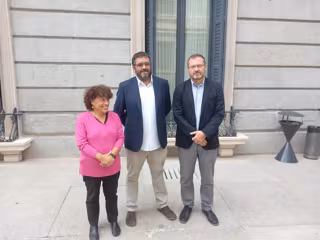El diputado de Sumar y dirigente de Més per Mallorca, Vicen Vidal, junto a representantes de Obra Cultural Balear - MÉS PER MALLORCA