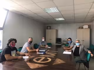 La portavoz de Unidas Podemos de Palma, Sonia Vivas, y el coordinador de Esquerra Unida, Juanjo Martínez, se han reunido este jueves con representantes del trabajadores de la Empresa Municipal de Transportes (EMT) para conocer de primera mi la actual situación de huelga que hay a la empresa.