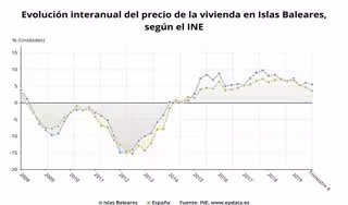 En concreto, en Baleares, la vivienda nueva aumentó su precio un 9,4% en 2019, y la vivienda de segunda mano se encareció un 5,2%.
