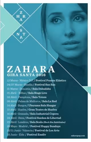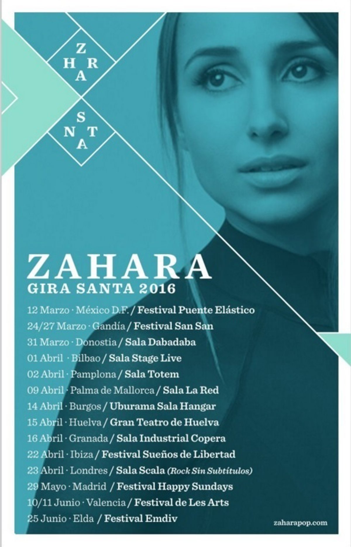 La cantante Zahara actuará en Palma el próximo sábado 9 de abril en la sala La Red -00.00 horas- y presentará, así, en la capital balear la 'Gira Santa 2016', en la que estará acompañada por Ramiro Nieto a la batería, Iván González 'Chapo' al bajo y coros, Manuel Cabezalí a la guitarra y Eduardo Martínez a los teclados.